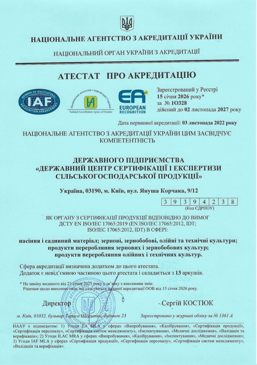 Наше Підприємство акредитовано згідно з вимогами ДСТУ EN ISO/IEC 17065:2019.